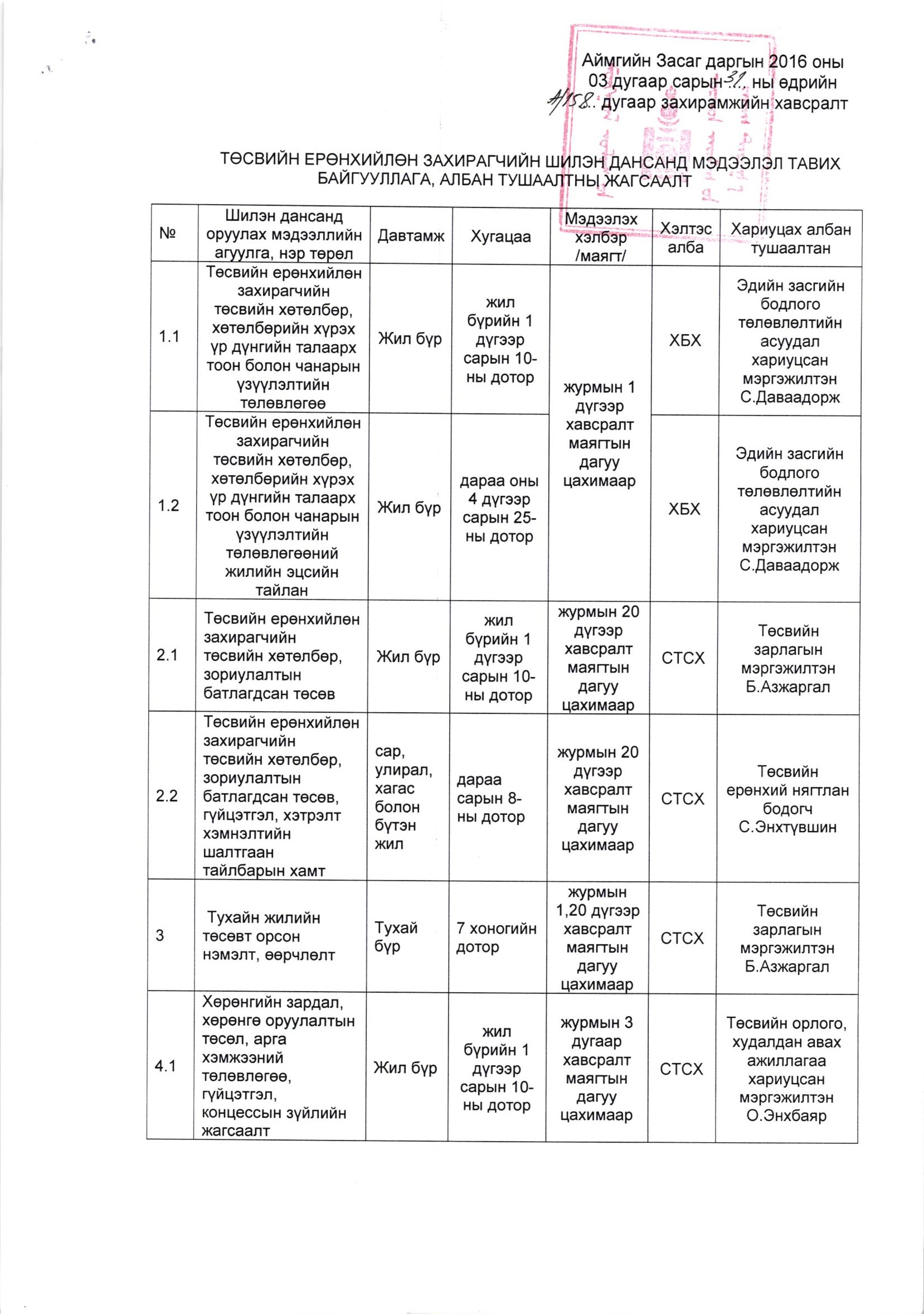 "Шилэн дансны тухай хууль, Шилэн дансны цахим хуудсанд тавих мэдээллийн агуулга, нийтлэг стандартыг тогтоох журмын хэрэгжилтийг сайжруулах" сэдэвт сургалтад 82 байгууллагын 215 албан хаагч хамрагдлаа.