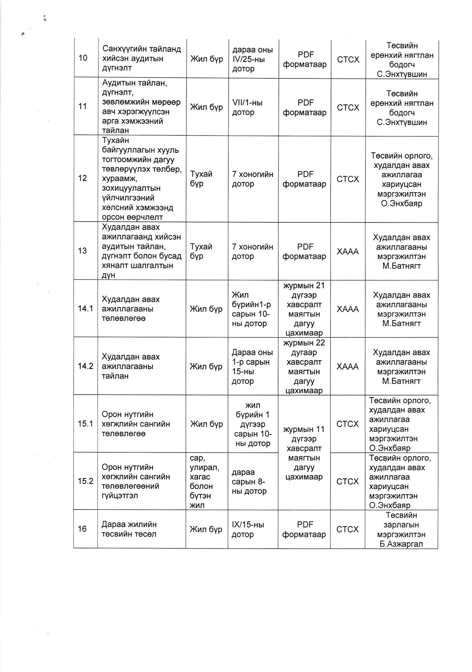 Санхүүгийн хяналт, дотоод аудитын газрын 10-р сард хийж гүйцэтгэсэн ажлын товч тайлан