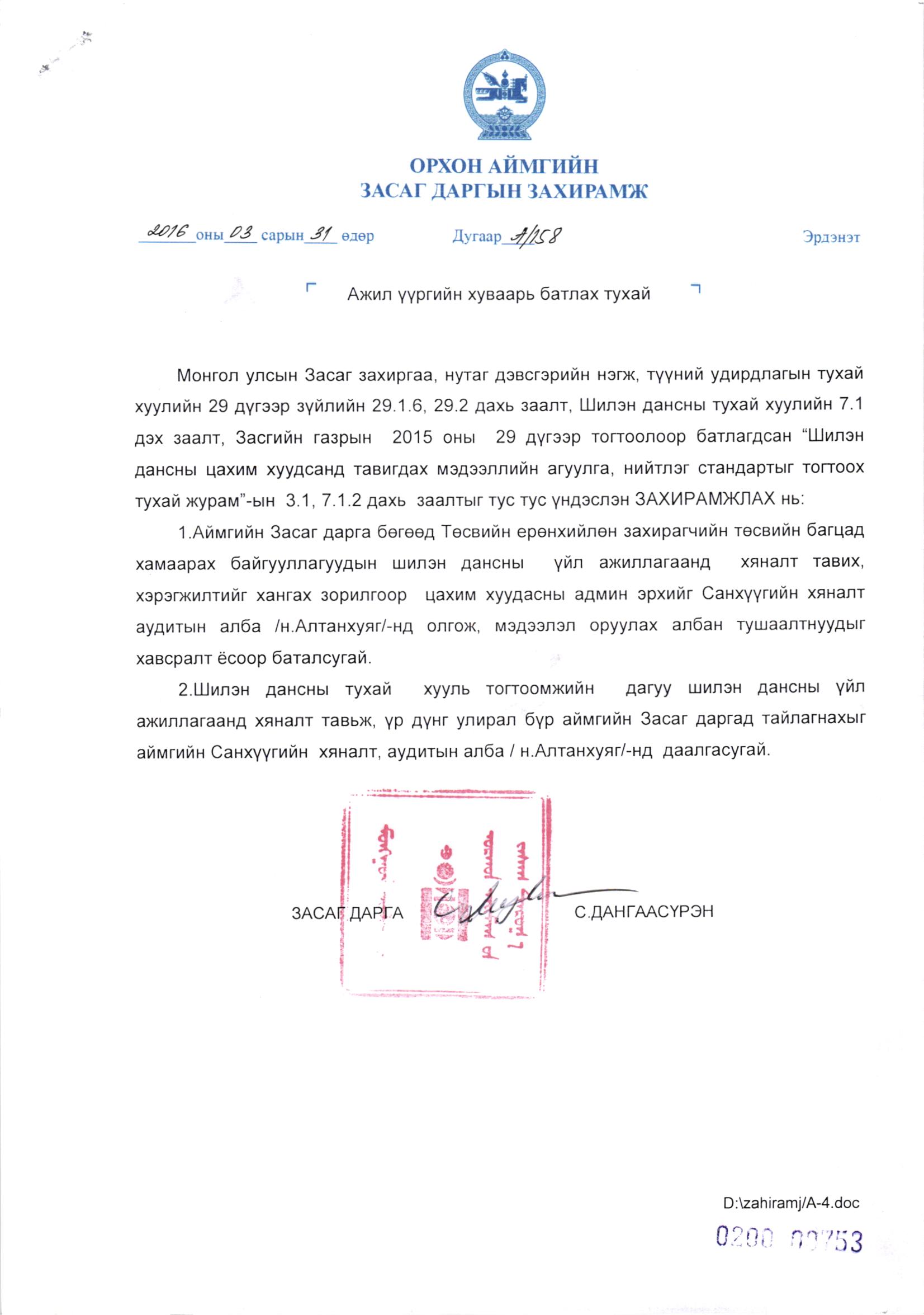 АУДИТЫН ГАЗРЫН ДАРГА Д.САЙЗМАА