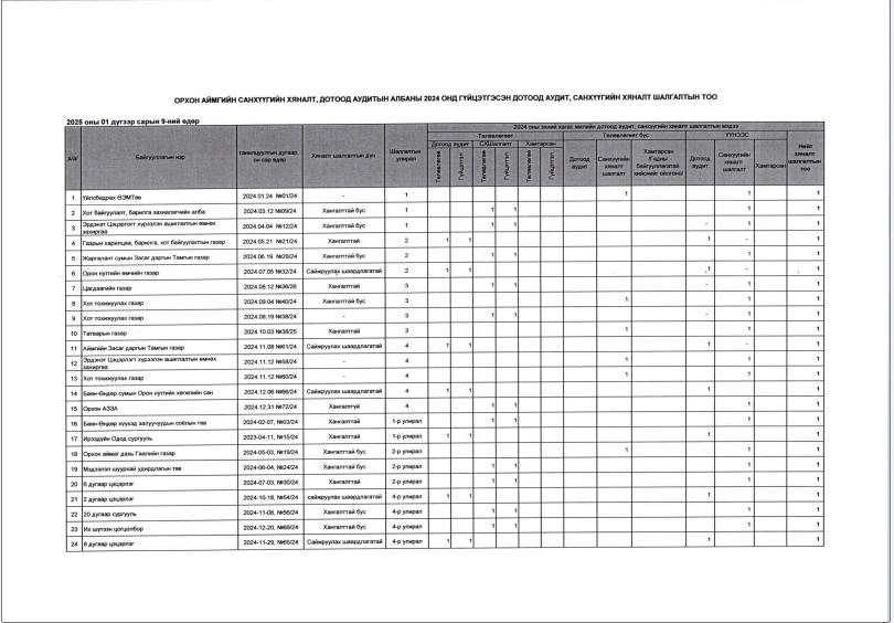 Санхүүгийн хяналт, дотоод аудитын газрын 10-р сард хийж гүйцэтгэсэн ажлын товч тайлан