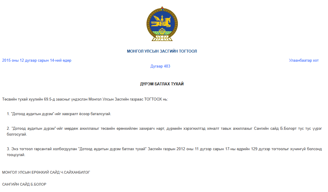 АУДИТЫН ГАЗРЫН ДАРГА Д.САЙЗМАА