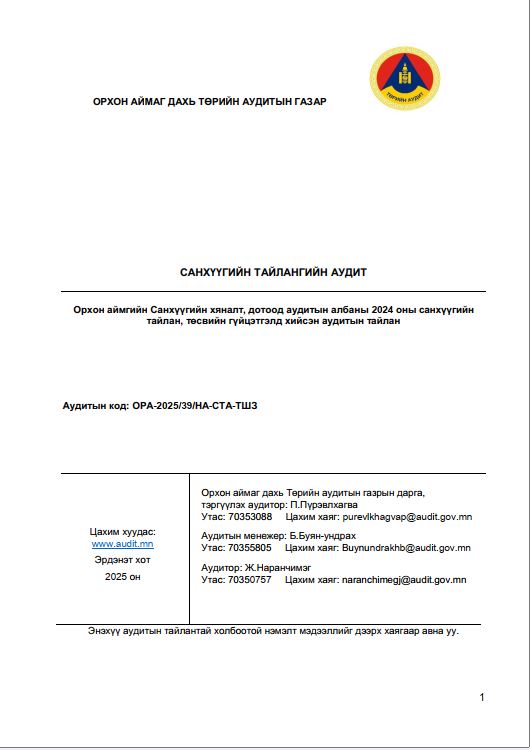 Санхүүгийн хяналт, дотоод аудитын газрын 10-р сард хийж гүйцэтгэсэн ажлын товч тайлан