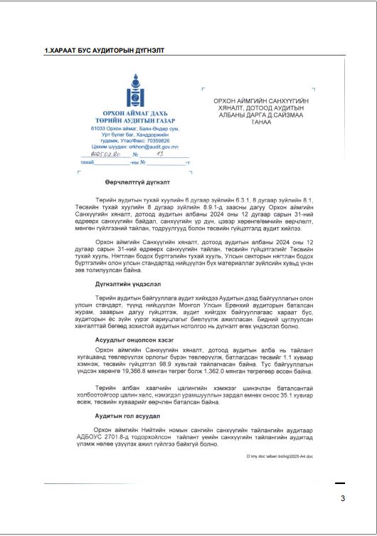 БАЙГУУЛЛАГЫН НЭР: САНХҮҮГИЙН ХЯНАЛТ,ДОТООД АУДИТЫН ГАЗАР