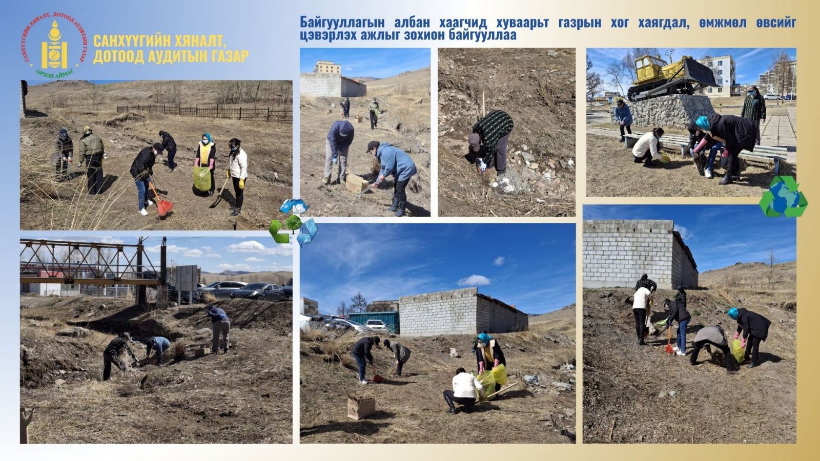 Байгууллагын албан хаагчид хуваарьт газрын хог хаягдал, өмжмөл өвсийг цэвэрлэх ажлыг зохион байгууллаа.